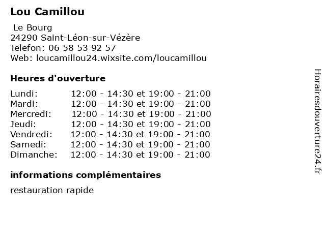 | Mardi | 12:00-14:30 et 19:00-21:00 |