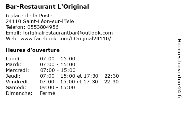 Termes de recherche pour Bar-Restaurant L'Original:restauration, restaurant, café, bar, bistrot, brasserie, l'original |