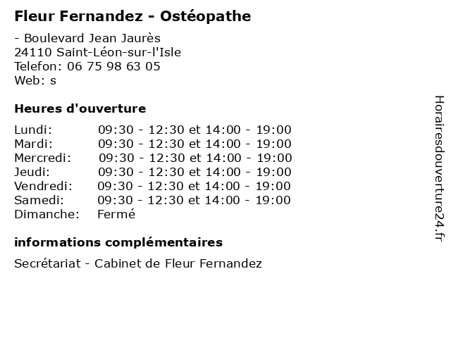 | Samedi | 09:30-12:30 et 14:00-19:00 |