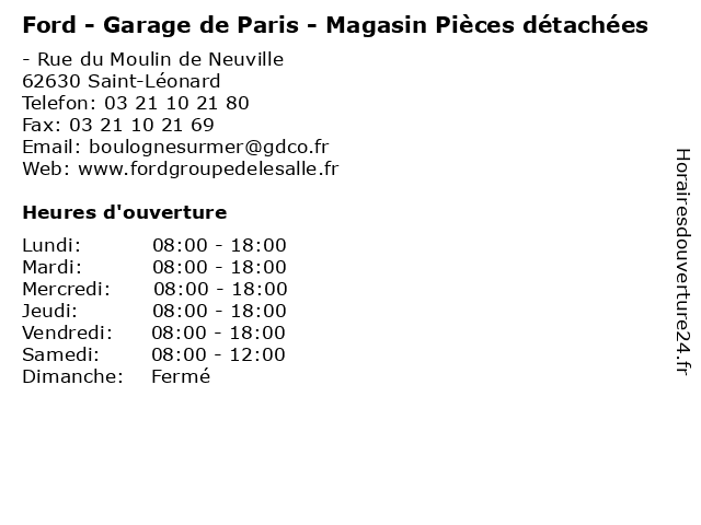 1 Ford - Garage de Paris - Service commercial (Distance: nan km) - Rue du Moulin de Neuville, 62630 Saint-Léonard commercial, de, ford, garage, paris, révisions, service, services, services d'automobiles 2 Ford - Garage de Paris - Véhicules d'Occasion (Distance: nan km) - Rue du Moulin de Neuville, 62630 Saint-Léonard d'occasion, de, ford, garage, paris, révisions, service, services, services d'automobiles, véhicules 3 Ford - Garage de Paris - Ford Entreprise (Distance: nan km) - Rue du Moulin de Neuville, 62630 Saint-Léonard de, entreprise, ford, garage, paris, révisions, service, services, services d'automobiles 4 Ford - Garage de Paris - Financement (Distance: nan km) - Rue du Moulin de Neuville, 62630 Saint-Léonard de, financement, ford, garage, paris, révisions, service, services, services d'automobiles 5 Magasin Doucet Vl (Distance: 0,44 km) 63 Boulevard de la Liane, 62360 Saint-Léonard accessoires, auto, doucet, magasin, outillage, pieces, vl, équipements 6 But - Magasin & Dépôt (Distance: 1,60 km) - Route Nationale 1, 62360 Isques ameublement, bureau, but, canapes, cuisine, decoration, déco, dépôt, et, magasin, maison, meubles, petit electro, sejour, équipement |
