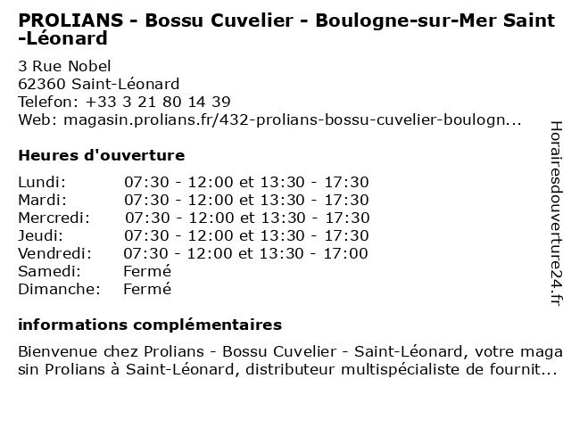| Lundi | 07:30-12:00 et 13:30-17:30 |