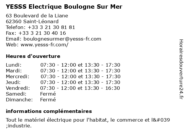 | Lundi | 07:30-12:00 et 13:30-17:30 |