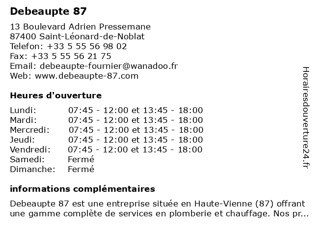 | Vendredi | 07:45-12:00 et 13:45-18:00 |