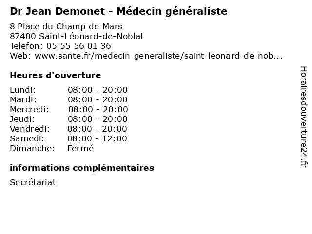 | Lundi | 08:00-20:00 |