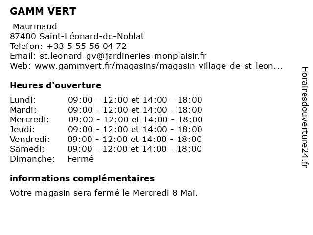 | Samedi | 09:00-12:00 et 14:00-18:00 |