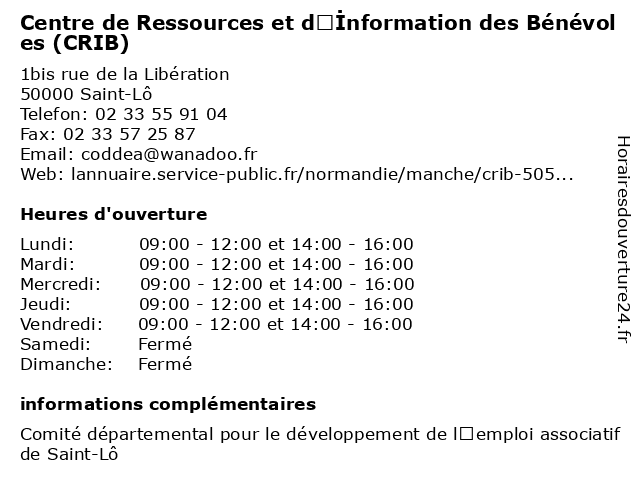 | Mercredi | 09:00-12:00 et 14:00-16:00 |