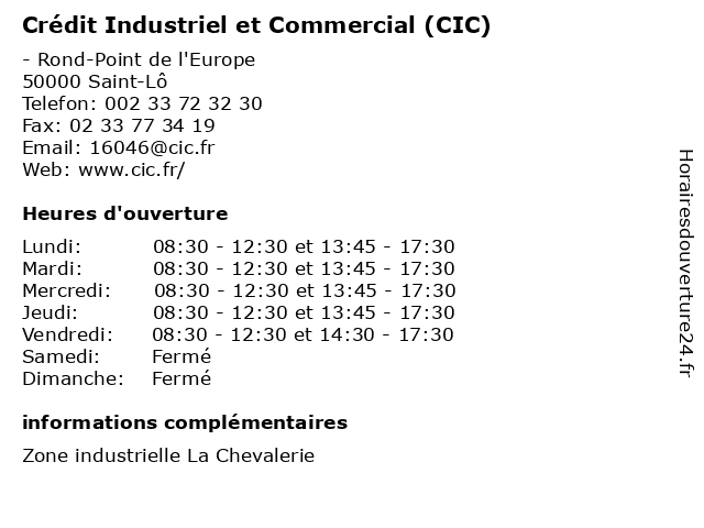 1 Crédit Industriel et Commercial (CIC) (Distance: 1,72 km) 1 Rue du Neufbourg, 50000 Saint-Lô agence, assurance, bancaire, banque, cic, commercial, crédit, et, industriel 2 CIC (Distance: 0,24 km) Zi De La Chevalerie, 50000 St Lo cic, compagnie de téléphone, organisme d'assurance 4 CIC (Distance: 1,71 km) 1 Rue Du Neufbourg, 50000 St Lo cic, compagnie de téléphone, organisme d'assurance 5 Divinor - Mercedes-Benz - Commercial (Distance: 2,37 km) 243 rue Léon Jouhaux, 50000 Saint Lô atelier, automobile, benz, commercial, concessionnaire, divinor, garage, mercedes, neuve, occasion, réparation, utilitaire, vente 6 CIC Agence (Distance: 50,73 km) 38 Avenue Henry Chéron, 14000 Caen agence, casteljaloux, cic, l'argent, l'épargne, la trésorerie, les banques, les finances, les prêts |