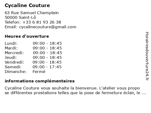 2 Carré de Lune (Distance: 26,33 km) 9 boulevard Alsace Lorraine, 50200 Coutances boutique, carré, couture, de, lune, mercerie, sevices 3 COUTURE MICHEL MAURICE LEON (Distance: 30,96 km) Gournay, 14310 Villy-Bocage couture, leon, maurice, michel 4 Labbe Couture Fioul (Distance: 35,65 km) Rue de Courvaudon, 14260 Les Monts d'Aunay couture, fioul, labbe 5 Marie-France Marie Couture Retouches (Distance: 44,70 km) 8 Route de Fontaine, 14210 Baron-sur-Odon couture, france, marie, retouches 6 La Petite Mercerie (Distance: 47,31 km) 64 Rue Couraye, 50400 Granville accessoires, boutique, broderie, couture, la, magasin, matériel, mercerie, petite |