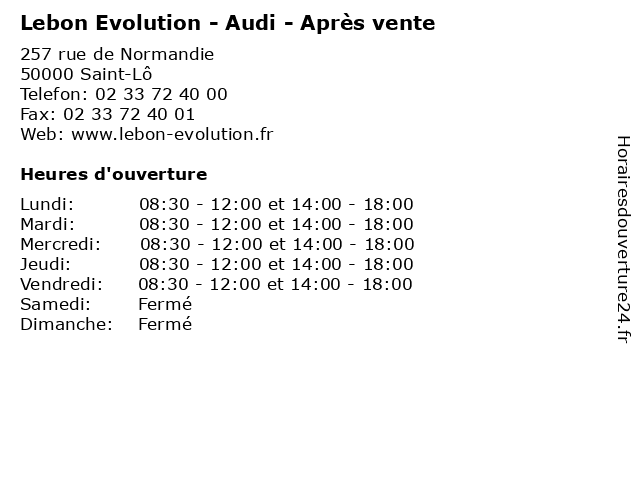 | Lundi | 08:30-12:00 et 14:00-18:00 |
