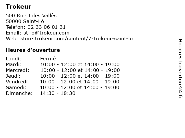 Jeudi | 10:00-12:00 et 14:00-19:00 |