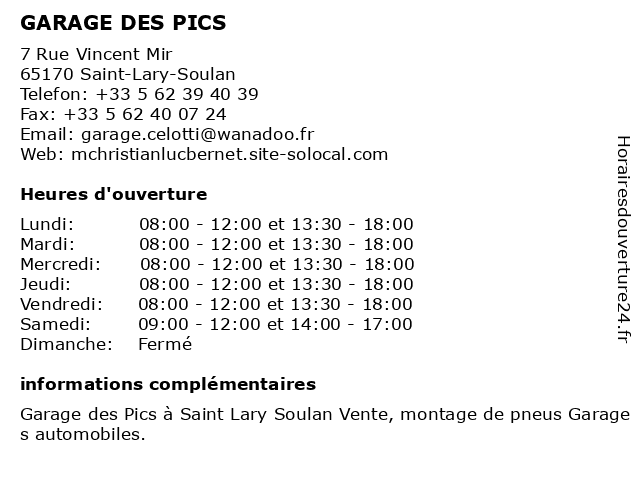 | Lundi | 08:00-12:00 et 13:30-18:00 |