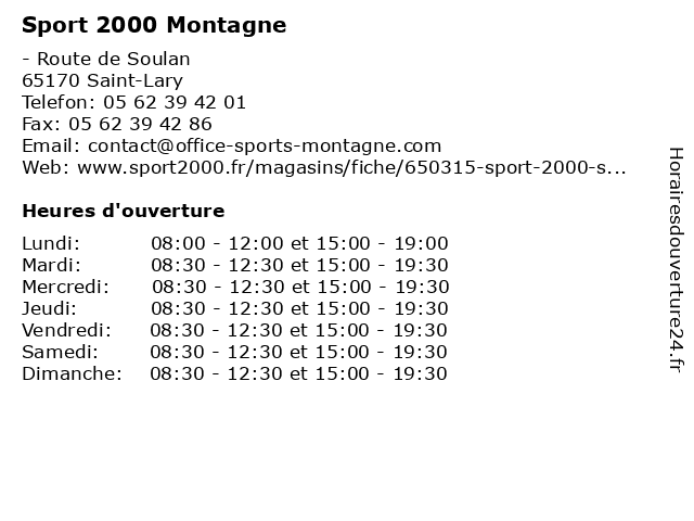 | Samedi | 08:30-12:30 et 15:00-19:30 |