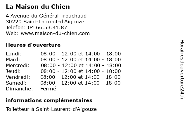 | Lundi | 08:00-12:00 et 14:00-18:00 |