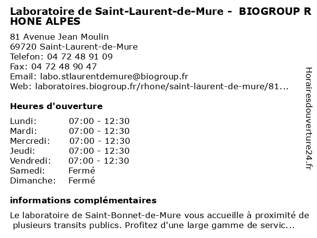 Termes de recherche pour Laboratoire de Saint-Laurent-de-Mure - BIOGROUP RHONE ALPES:de, saint, mure, laurent, laboratoire, alpes, rhone, biogroup, dépistages, laboratoire de diagnostic |