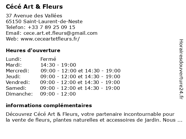 | Samedi | 09:00-12:00 et 14:30-19:00 |