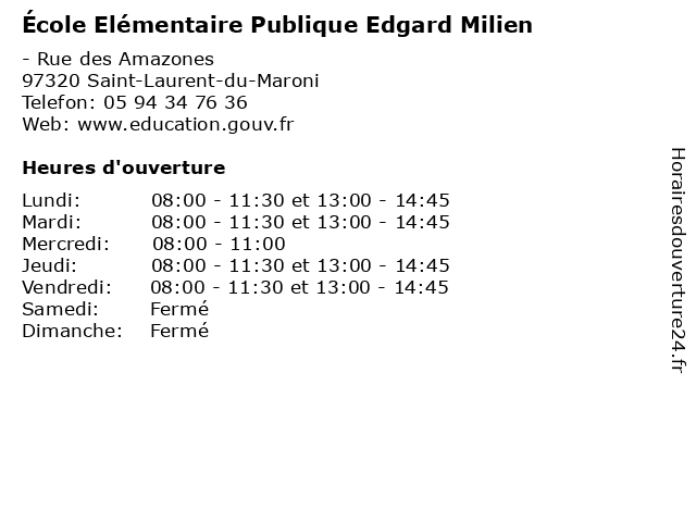 | Mardi | 08:00-11:30 et 13:00-14:45 |