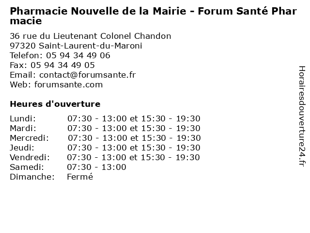 | Lundi | 07:30-13:00 et 15:30-19:30 |