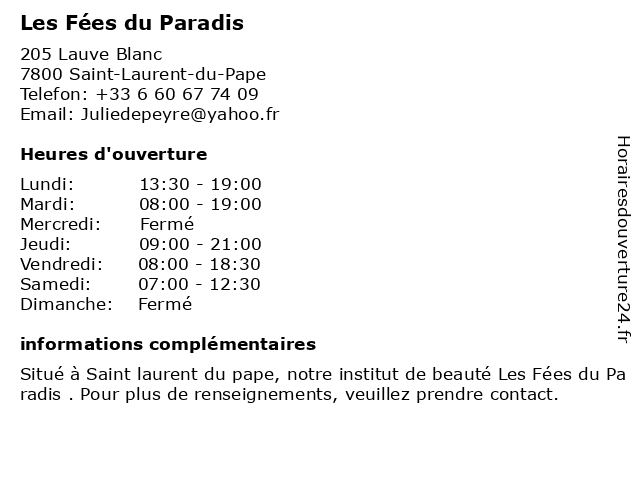 | Lundi | 13:30-19:00 |