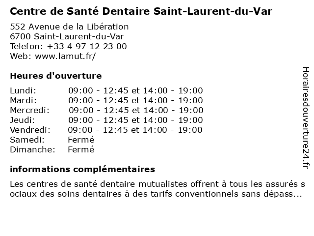 Lundi | 09:00-12:45 et 14:00-19:00 |