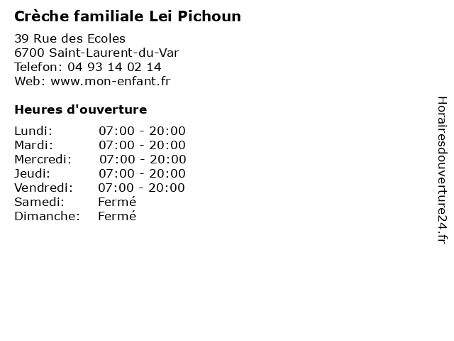 | Lundi | 07:00-20:00 |