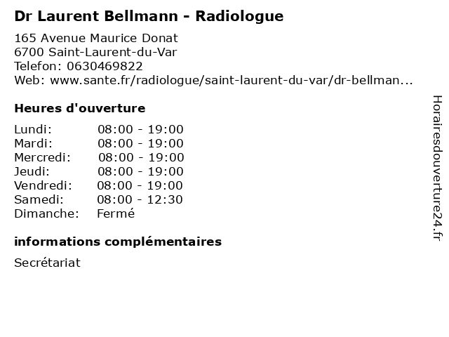 1 Dr Francoise Bellmann - Pédiatre (Distance: 5,50 km) 152 Boulevard des Jardiniers, 06200 Nice bellmann, dr, enfant, francoise, medecin, pediatre, pédiatre, soins 2 Dr Françoise Bellmann - Pédiatre (Distance: 5,51 km) 29 Avenue Auguste Verola, 06200 Nice bebe, bellmann, dr, francoise, françoise, nourisson, pédiatre, pédiatrie 3 Dr Thomas Benzaken - Radiologue (Distance: 0,00 km) 165 Avenue Maurice Donat, 06700 Saint-Laurent-du-Var benzaken, consultation, docteur, dr, med, médecin, radiologue, thomas, traitement 4 Dr Felipe Soares - Radiologue (Distance: 0,00 km) 165 Avenue Maurice Donat, 06700 Saint-Laurent-du-Var consultation, docteur, dr, felipe, med, médecin, radiologue, soares, traitement 5 Dr Philippe Roux - Radiologue (Distance: 0,00 km) 165 Avenue Maurice Donat, 06700 Saint-Laurent-du-Var consultation, docteur, dr, med, médecin, philippe, radiologue, roux, traitement 6 Dr Philippe Cazaux - Radiologue (Distance: 0,00 km) 165 Avenue Maurice Donat, 06700 Saint-Laurent-du-Var cazaux, consultation, docteur, dr, med, médecin, philippe, radiologue, traitement |