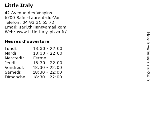 1 Little Italy (Distance: 11,49 km) 41 Boulevard Charles Guillaumont, 06160 Antibes italy, little, restaurants 2 Little Italy (Distance: 13,31 km) 21 Montée des Impiniers, 06220 Vallauris alex, food truck, italy, little, restaurants 3 My Little Japan (Distance: 5,15 km) 41 boulevard Napoleon, 06000 Nice boutique, ecommerce, japan, japon, little, mode, my 4 Little Rock Diner (Distance: 7,93 km) 141 route de Nice, 06600 Antibes bistrot, diner, little, restaurant, rock 6 My Little Vap (Distance: 8,11 km) 85 Boulevard Gambetta, 06000 Nice cigarette, cigarettes, e-liquide, electroniques, little, my, vap, vapotage, vapote, vapoteur, électronique |