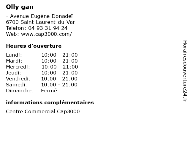 | Mercredi | 10:00-21:00 |