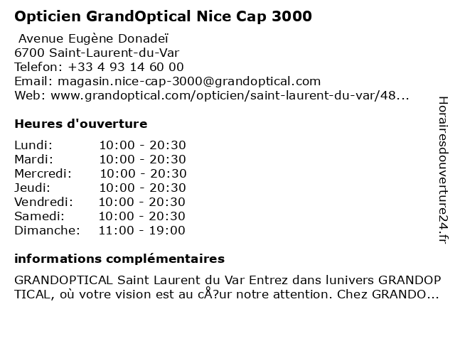 1 Opticien NICE CAP 3000 Générale d'Optique (Distance: 0,02 km) 317 Avenue Eugène Donadeï, 06700 Saint-Laurent-du-Var 3000, cap, d'optique, examen de la vue, générale, lentilles de contact, lentilles progressives, lunette ray ban, lunettes, lunettes anti-lumière bleue, lunettes de conduite de nuit, lunettes de conduites de nuit, lunettes de soleil, lunettes de soleil pour enfant, lunettes de soleil pour femme, lunettes de soleil pour homme, lunettes de vue, lunettes de vue femme, lunettes de vue homme, lunettes progressives, nice, opticien, opticien proche de chez moi, optique, sport à la vue, vérification de la vue 2 Solaris - Cap 3000 (Distance: 0,04 km) Avenue Eugène Donadeï, 06700 Saint-Laurent-du-Var 3000, cap, lunettes de soleil pour enfant, lunettes de soleil pour femme, lunettes de soleil pour homme, solaris 3 Opticien Saint-Laurent-Du-Var - Optic 2000 (Distance: 0,04 km) 317 Avenue Eugène Donadeï, 06700 Saint-Laurent-du-Var 2000, du, laurent, lentilles de contact, lunettes de soleil, lunettes de vue, optic, optic2000, opticien, opticien optic2000, ray-ban, rayban, saint, var 4 Apple CAP 3000 (Distance: 0,04 km) Avenue Eugène Donadeï, 06700 Nice 3000, apple, atelier de réparation de téléphones mobiles, cap, réparation d’ordinateurs 5 Urban Outfitters - Nice (Distance: 0,05 km) 3000 Avenue Eugene Donadei Cap, 06700 SAINT LAURENT DU VAR nice, outfitters, urban 6 The LEGO® Store Nice (Distance: 0,05 km) 3000 Avenue Eugène Donadeï Centre Commercial Cap, 06700 Saint-Laurent-du-Var lego®, nice, store, the |