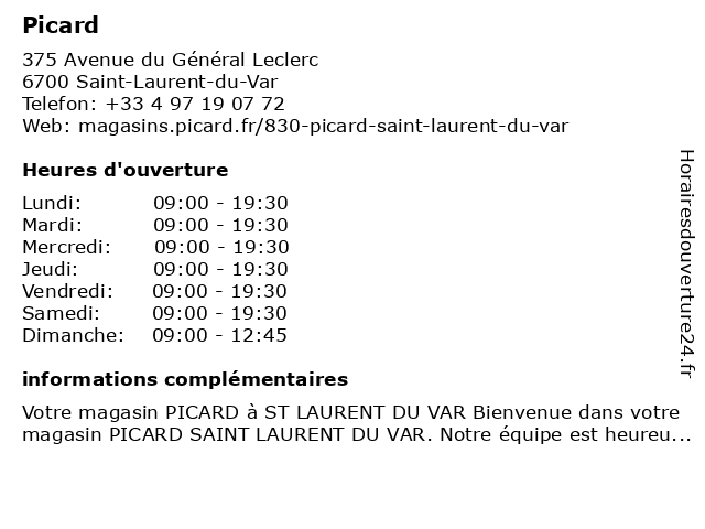 Votre magasin PICARD à ST LAURENT DU VAR Bienvenue dans votre magasin PICARD SAINT LAURENT DU VAR. Notre équipe est heureuse de vous accueillir et pourra vous conseiller avec professionnalisme et...