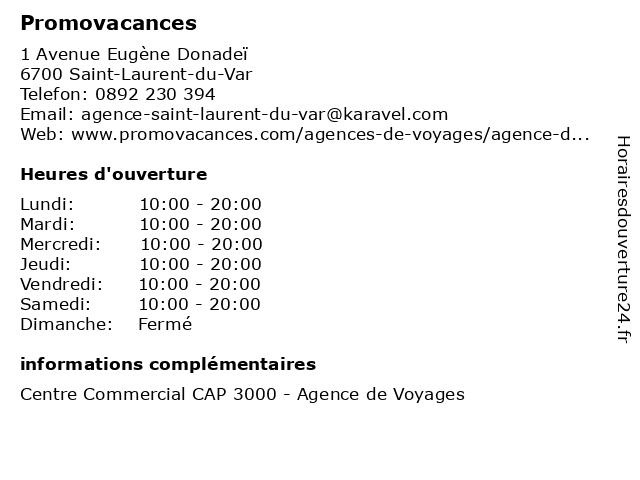 1 Promovacances (Distance: 7,10 km) 16/18 Avenue Thiers, 06000 Nice agence, billet d'avion et hôtel pour votre club, promovacances, séjour, voyage 2 Couture du Cap (Distance: 0,00 km) - Avenue Eugène Donadeï, 06700 Saint Laurent du Var cap, couture, couturier, du, retouches, saint laurent du var 3 Le Chocolat Alain Ducasse - Le Comptoir Cap 3000 Corso (Distance: 0,00 km) - avenue Eugène Donadeï, 06700 Saint-Laurent-Du-Var 3000, alain, cap, chocolat, chocolats, comptoir, cornet, corso, ducasse, glacier, le, sorbet 4 Petit Bateau (Centre Commercial Cap 3000 ) (Distance: 0,05 km) , avenue Eugène Donadeï, 06700 Saint Laurent Du Var 3000, bateau, cap, centre, children's clothing, commercial, men's clothing, petit, women's clothing 5 Tui Store (Distance: 0,11 km) 126 avenue Léon Berenger, 06700 Saint-Laurent-du-Var agence, excursions, loisirs, store, séjours, tourisme, tui, vacances, voyages 6 Hotel Mercure Nice Cap 3000 Aéroport (Distance: 0,20 km) 190 Avenue Georges Guynemer, 06700 Saint Laurent Du Var 3000, aéroport, bar, cap, hotel, mercure, nice, retaurant, service |