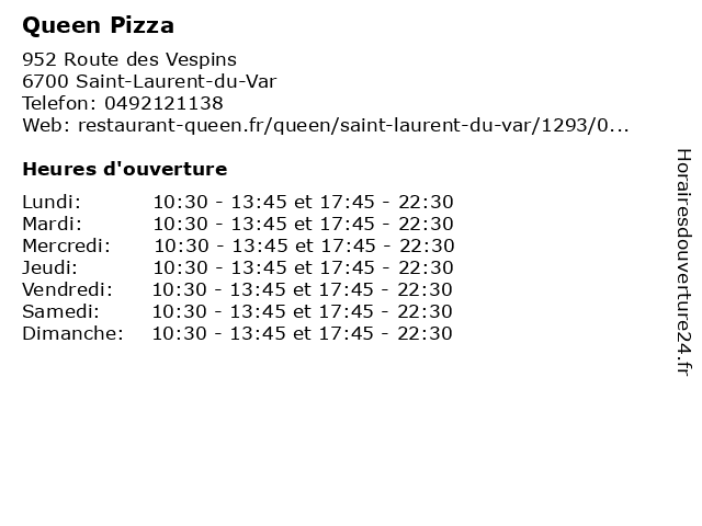 | Mardi | 10:30-13:45 et 17:45-22:30 |