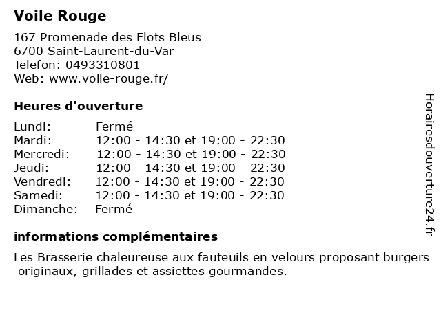 | Mercredi | 12:00-14:30 et 19:00-22:30 |
