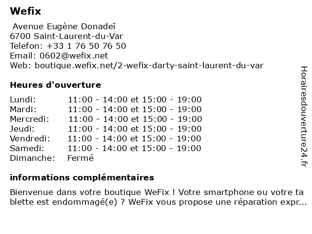 | Mercredi | 11:00-14:00 et 15:00-19:00 |