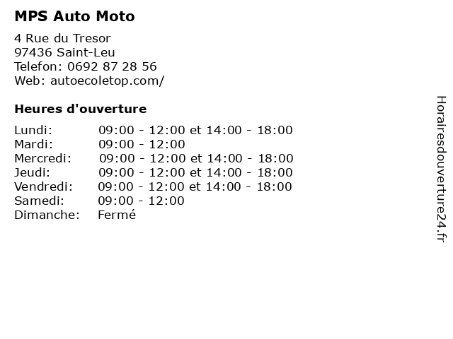 Lundi | 09:00-12:00 et 14:00-18:00 |