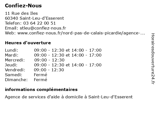 | Mardi | 09:00-12:30 et 14:00-17:00 |