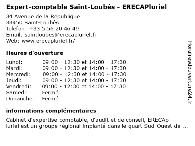 | Lundi | 09:00-12:30 et 14:00-17:30 |