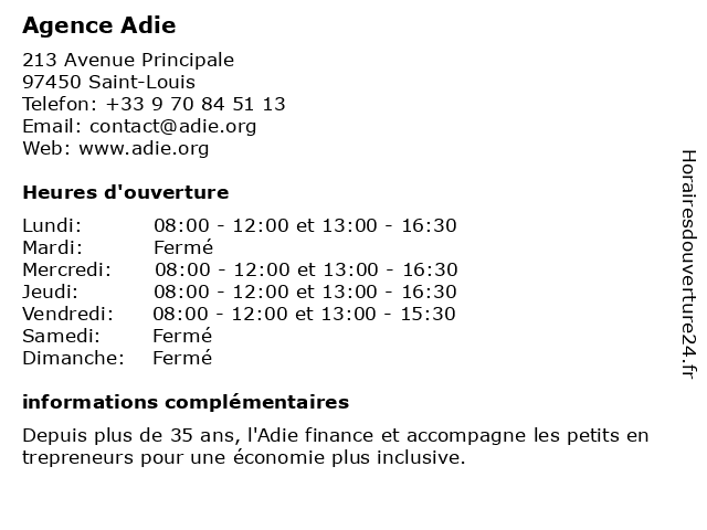 | Mercredi | 08:00-12:00 et 13:00-16:30 |