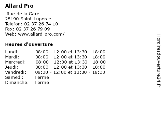 | Mercredi | 08:00-12:00 et 13:30-18:00 |