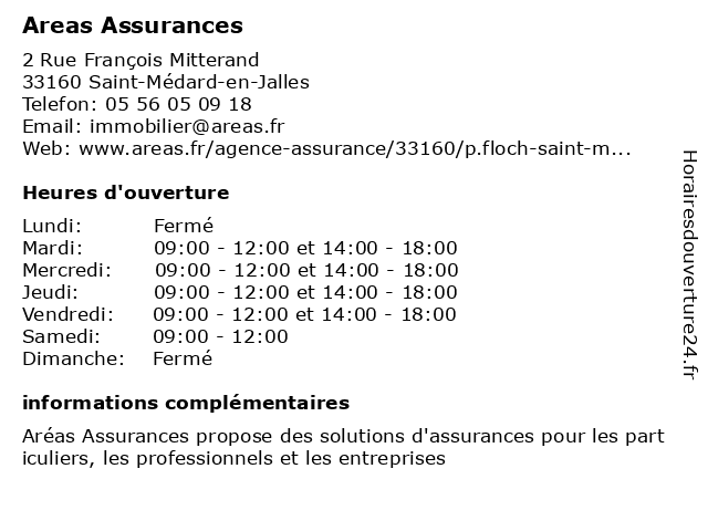 1 Areas Assurances (Distance: 3,95 km) 65 Avenue de Soulac, 33320 Le Taillan-Médoc areas, aréas, assurances, santé, services 2 Areas Assurances (Distance: 7,42 km) 15 Avenue de Saint Medard, 33320 Eysines areas, assurances, santé, services 3 Areas Assurances (Distance: 9,90 km) 387 Avenue d'Ares, 33200 Bordeaux areas, assurances, santé, services 4 Areas Assurances (Distance: 10,54 km) 92 Chemin du Blayais, 33127 Saint-Jean-d'Illac areas, assurances, santé, services 5 Areas Assurances (Distance: 12,19 km) 43 Rue Huguerie, 33000 Bordeaux areas, aréas, assurances, santé, services 6 Areas Assurances (Distance: 16,66 km) 20 Avenue John Fitzgerald Kennedy, 33310 Lormont areas, aréas, assurances, santé, services |