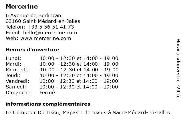Lundi | 10:00-12:30 et 14:00-19:00 |