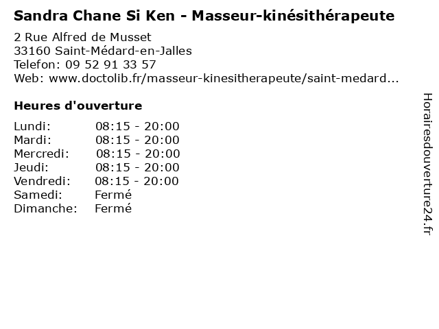 | Lundi | 08:15-20:00 |