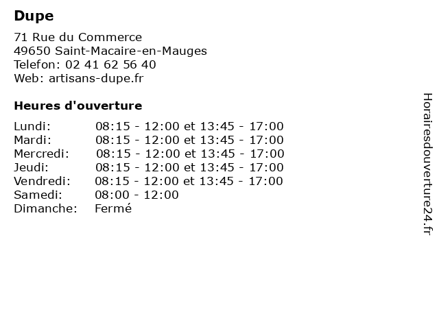 Lundi | 08:15-12:00 et 13:45-17:00 |