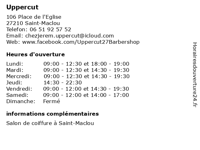 | Vendredi | 09:00-12:00 et 14:30-19:30 |