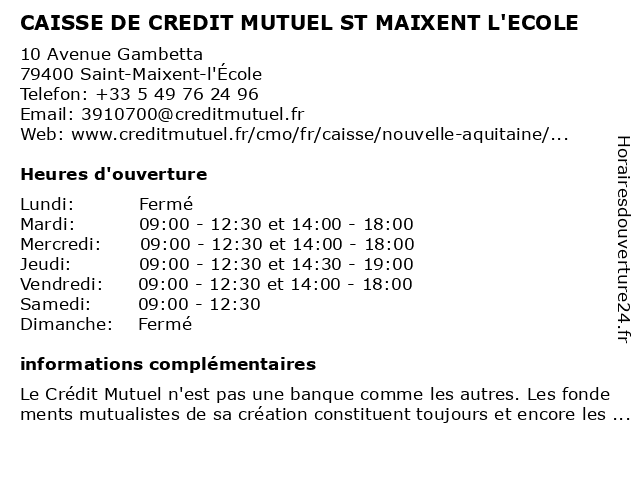 Termes de recherche pour CAISSE DE CREDIT MUTUEL ST MAIXENT L'ECOLE:de, st, l'école, maixent, crédit, mutuel, caisse |