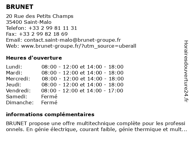 | Mercredi | 08:00-12:00 et 14:00-18:00 |