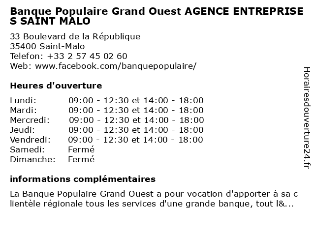 Termes de recherche pour Banque Populaire Grand Ouest AGENCE ENTREPRISES SAINT MALO:saint, grand, malo, agence, ouest, banque, entreprises, populaire |
