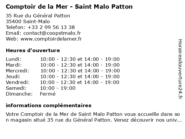 Termes de recherche pour Comptoir de la Mer - Saint Malo Patton:la, mer, de, saint, malo, comptoir, patton |