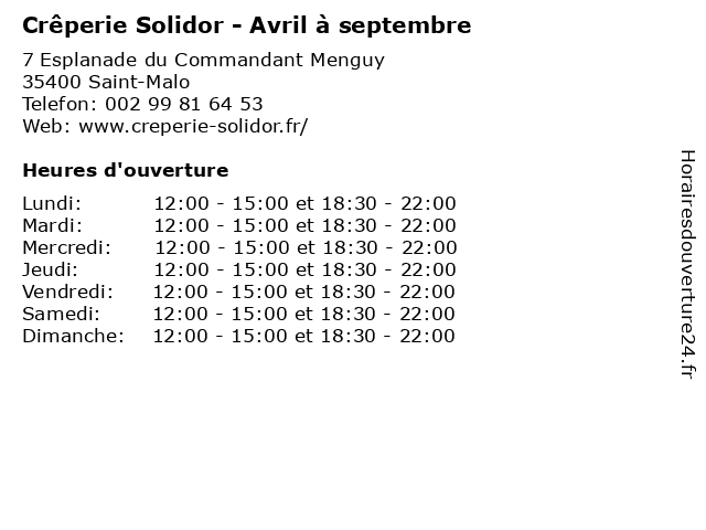 | Vendredi | 12:00-15:00 et 18:30-22:00 |