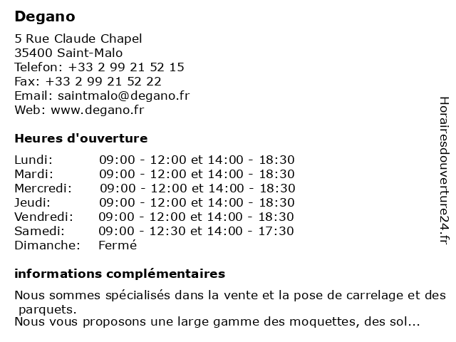 | Lundi | 09:00-12:00 et 14:00-18:30 |