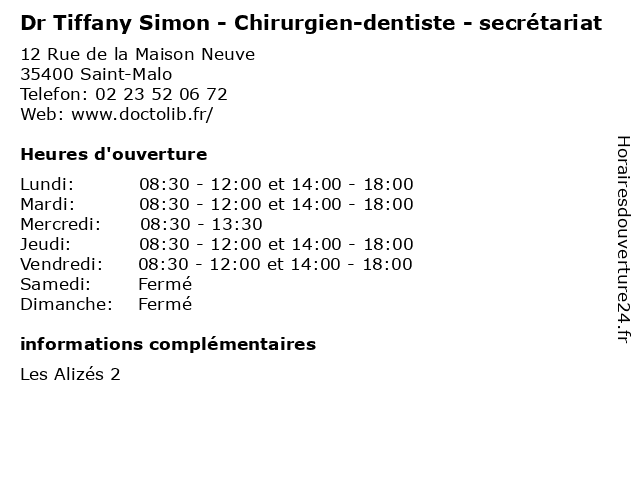| Lundi | 08:30-12:00 et 14:00-18:00 |
